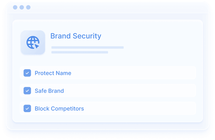 We offer an end-to-end service for defensive registrations – researching, monitoring, and acquiring any similar domain names to your brand.
